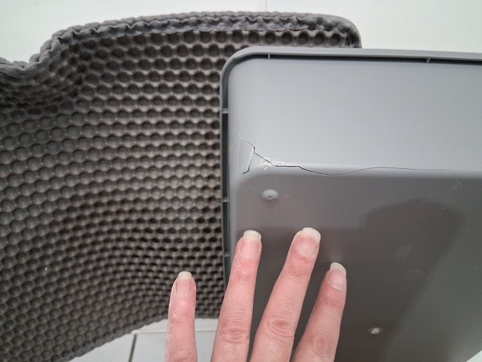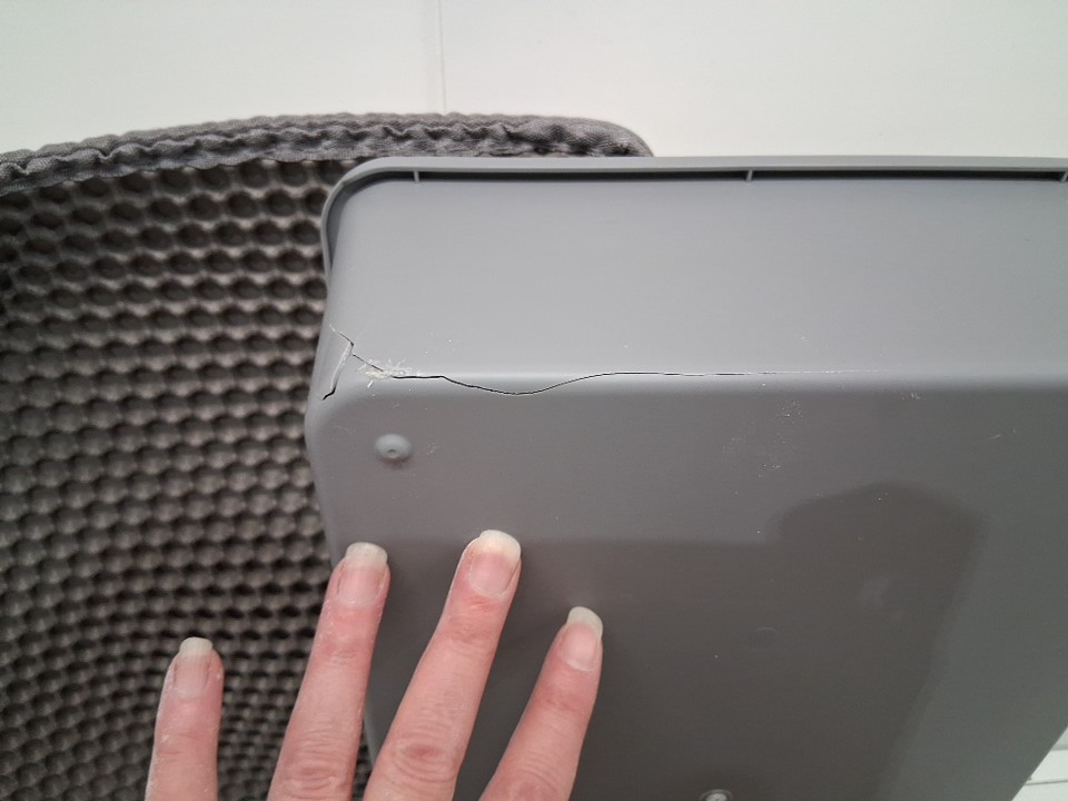 Collection bin has a crack along the corner and sides see photo
