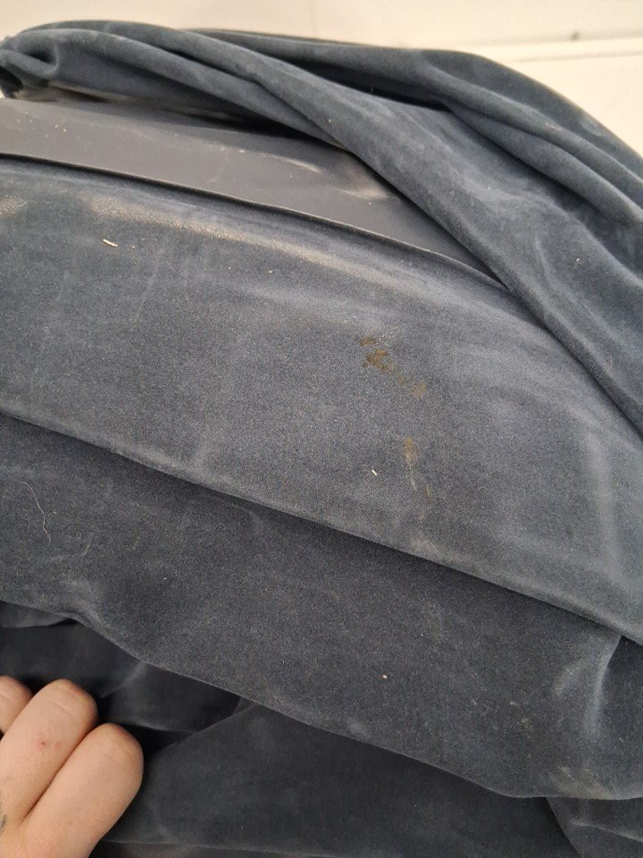 Mattress has loose hair and dust on it, as well as a small black stain on side