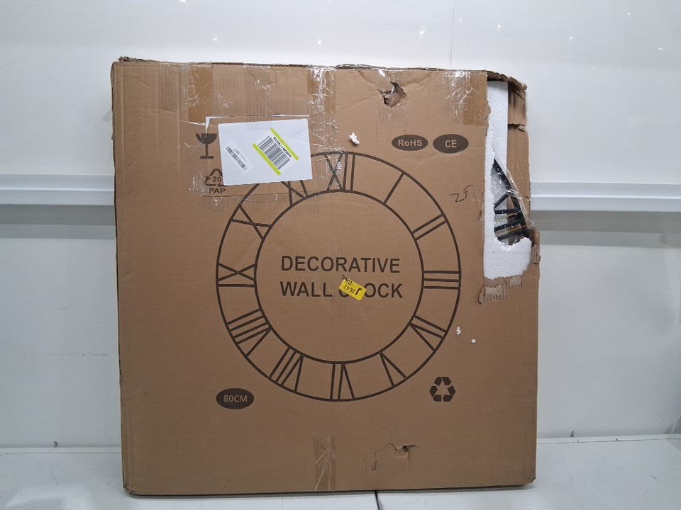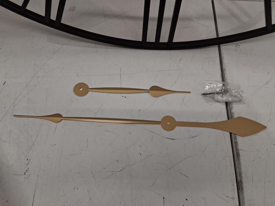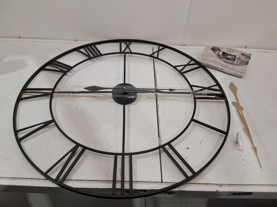 MEE 2OU vintage decorative non-ticking battery operated roman numeral wall clock with interchangeable gold hands - 31.4" round - black