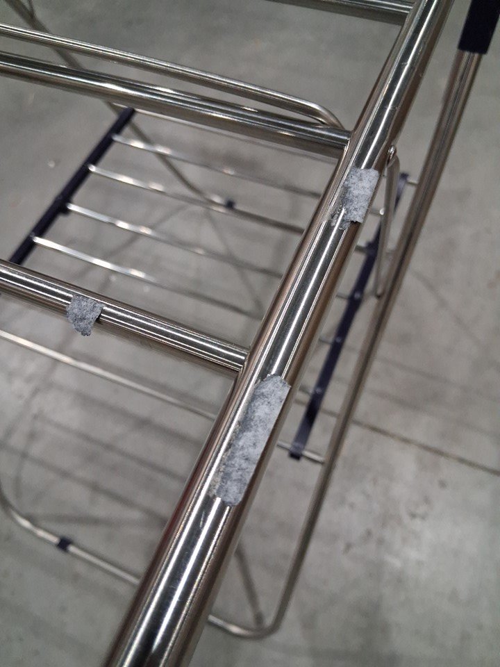 please note that item is missing 2 side bottom racks (2nd pic for reference) and it has some tape and stickers residue on it (see photos).