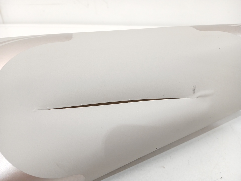 The top layer has a rip in it and stickers on it. The ends have some wear. Brand new this item is 28 square feet, but with the damage it is closer to 25 square feet.