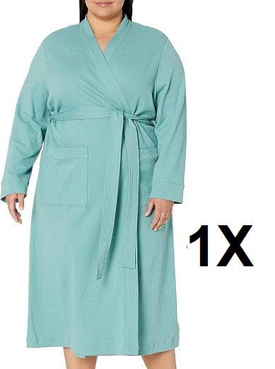 women's amazon essentials waffle shower robe - 1X - TEAL BLUE (style: AEW30219SS22)