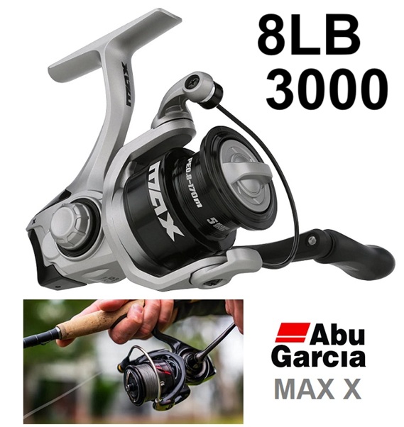 Abu Garcia Max X Spinning Reel - 3000 Reel Size - 8lb Max Drag - 5:2:1 Gear Ratio - Silver/Black/Red (Model: MAXX3000)