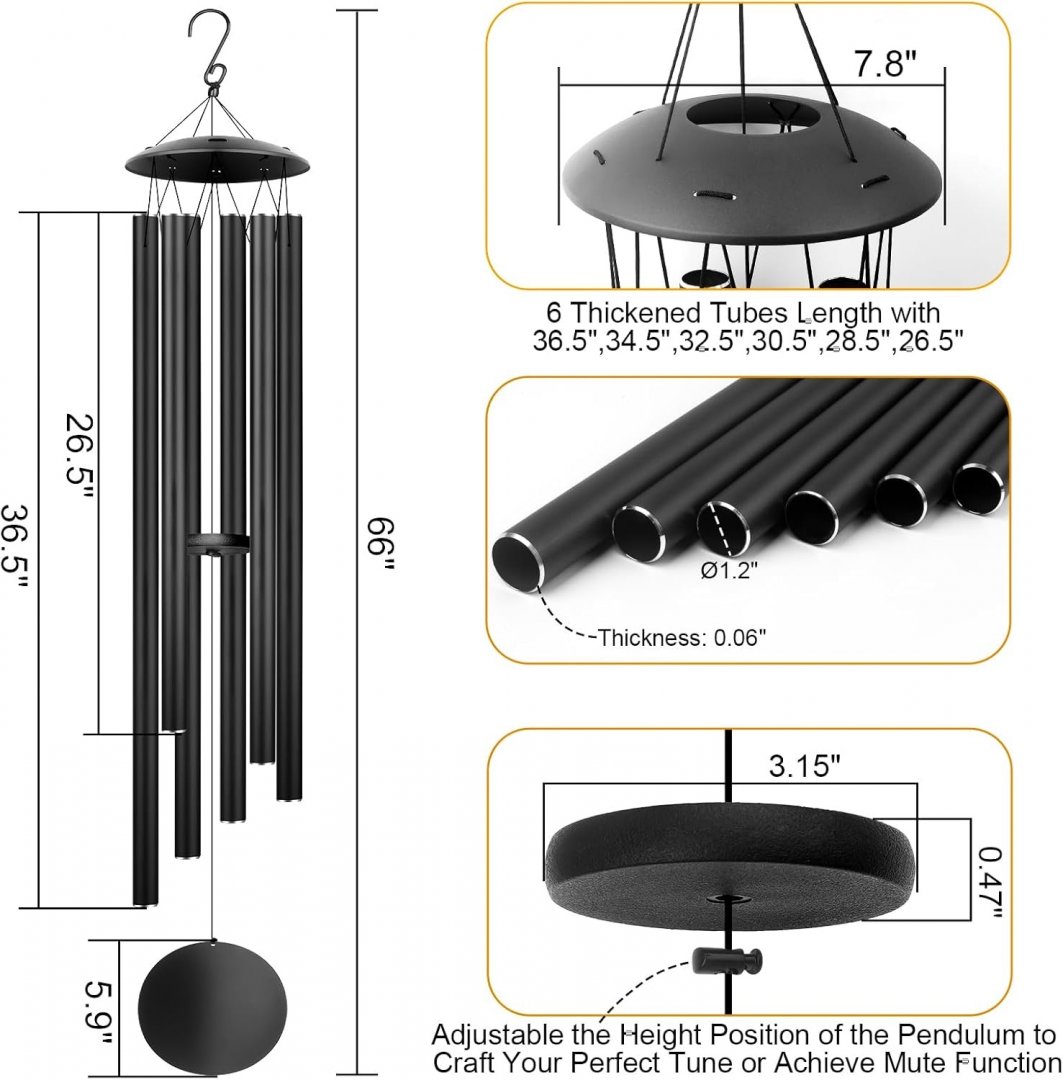 Large Wind Chimes for Outside Deep Tone - 66" - BLACK (MODEL: YMX-Wind Chime)