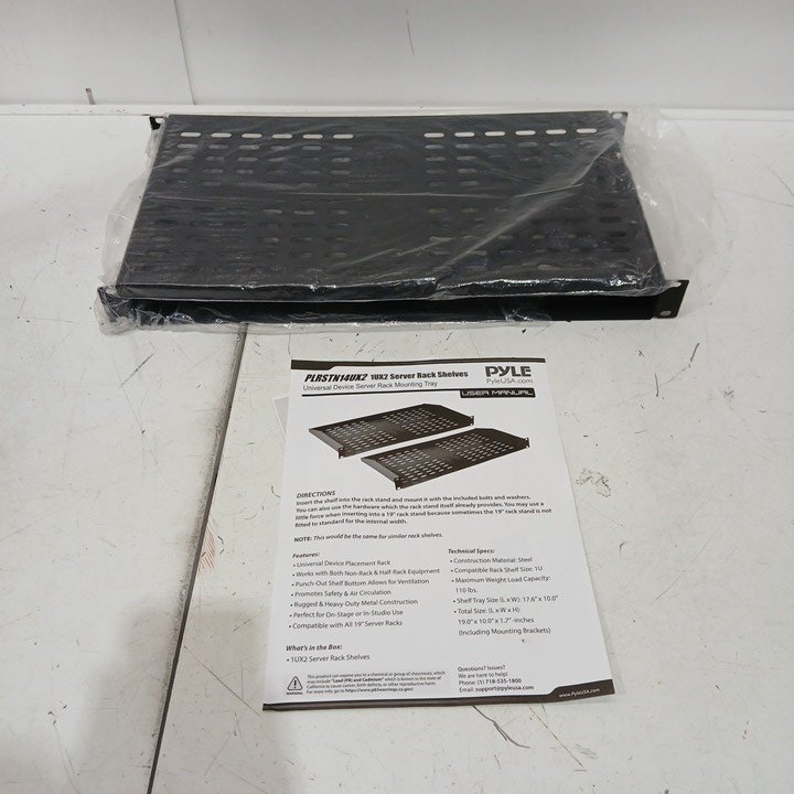 2PK Pyle 1U Server Rack Vented Shelves For Good Air Circulation, Cantilever Mount, Wall Mount Rack, Universal Device, Cabinet Shelf, Computer Case Mounting Tray - Black (MODEL: PLRSTN14UX2)