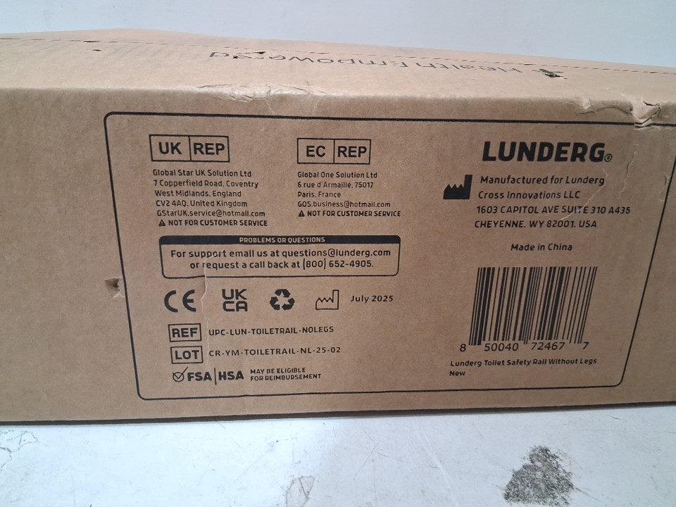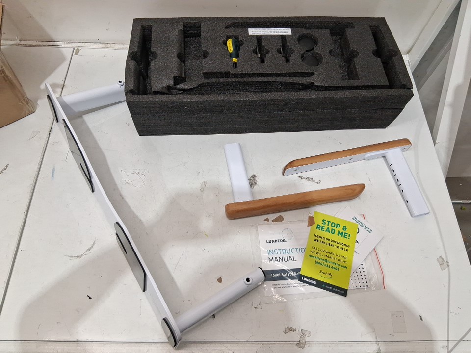 LUNDERG TOILET SAFETY HANDRAILS WITH NO LEGS - OSFM - WHITE/WOOD (MODEL:LUN-TOILETRAIL-NOLEGS)