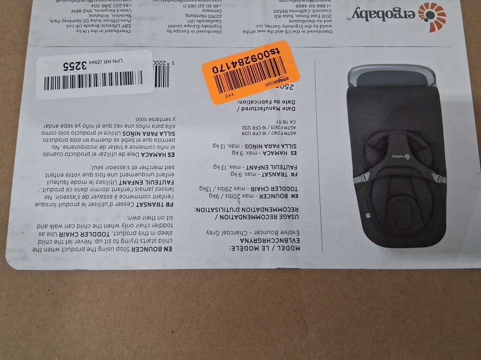 ERGOBABY EVOLVE 3-IN-1 ADJUSTABLE BOUNCER FOR NEWBORNS TO TODDLERS UP TO 20LBS - CHARCOAL GREY - (MODEL: EVLBNCCHRGRYNA)