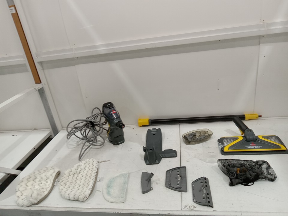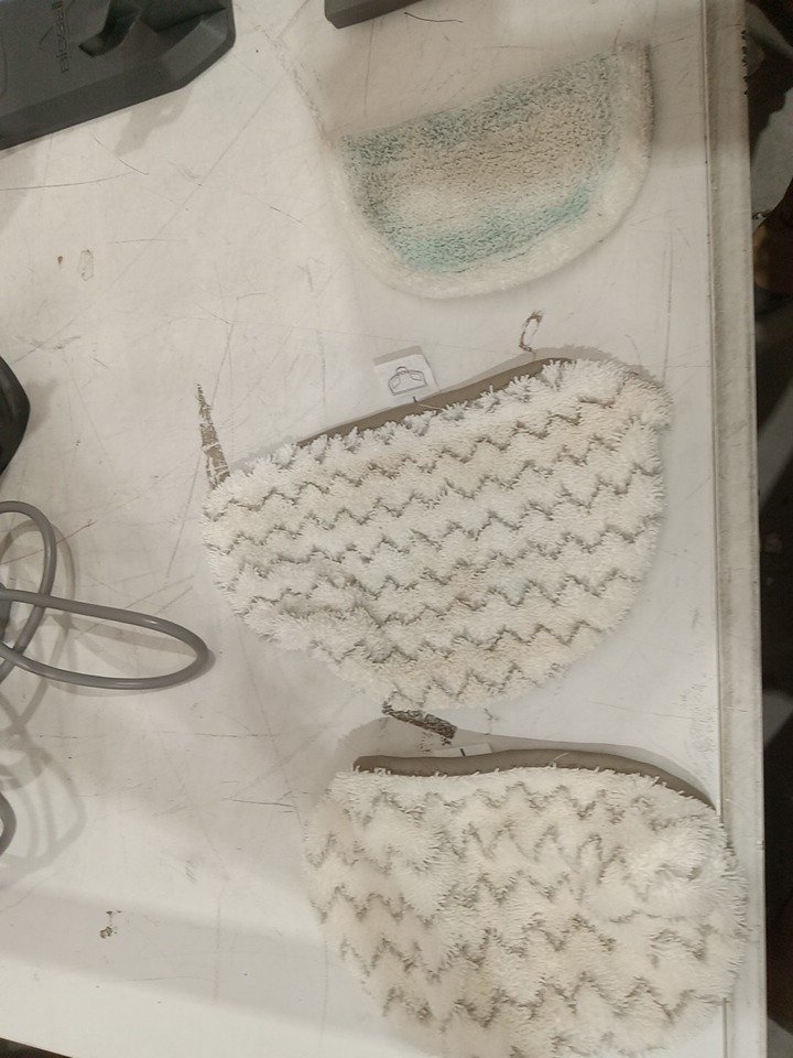 There are water stains on the water tank and there are dirt residue on the mop pads due to previous use. Tested for basic power only. (Please see photos)