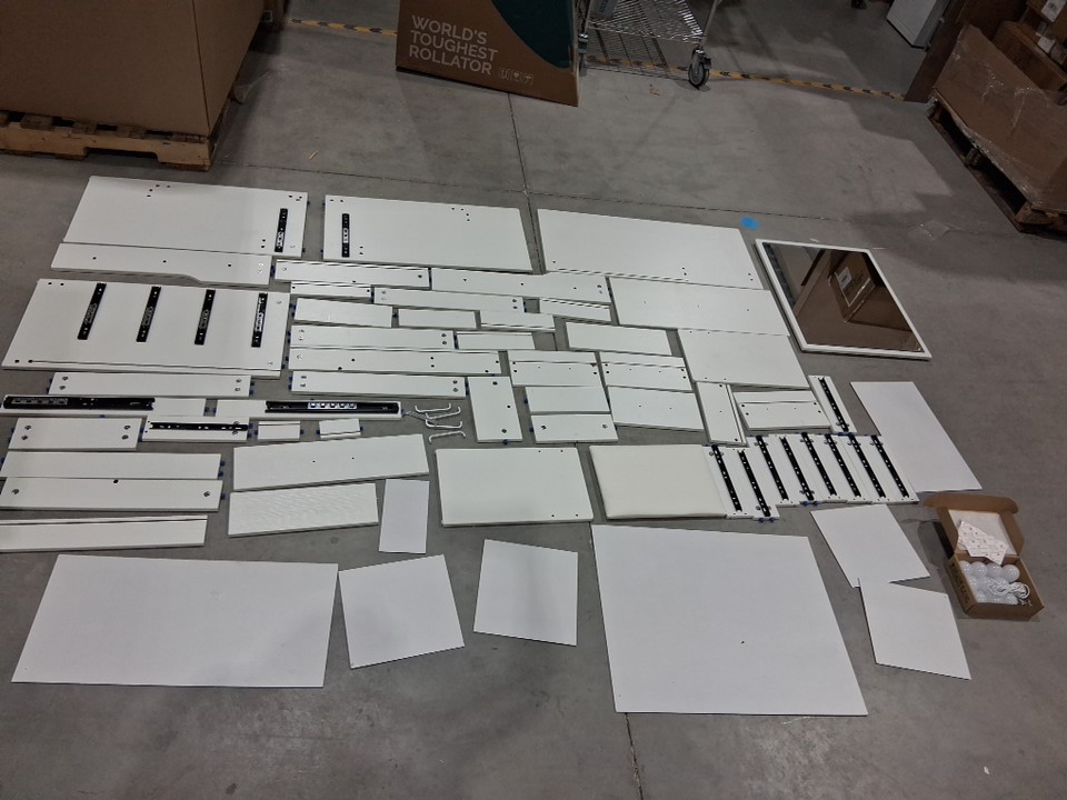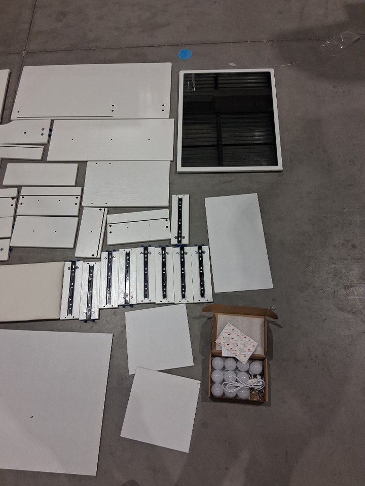 Please note this item has damage from previous assembly. There are multiple markings on the product from previous use please note this item does not come with an instruction manual. Additional generic hardware may be required for assembly