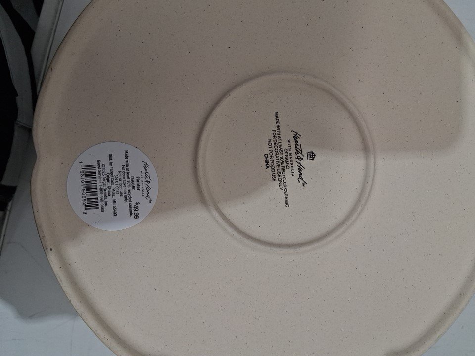 hearth & Hand magnolia stoneware indoor/outdoor planter pot with affixed saucer- 11.25" - cream