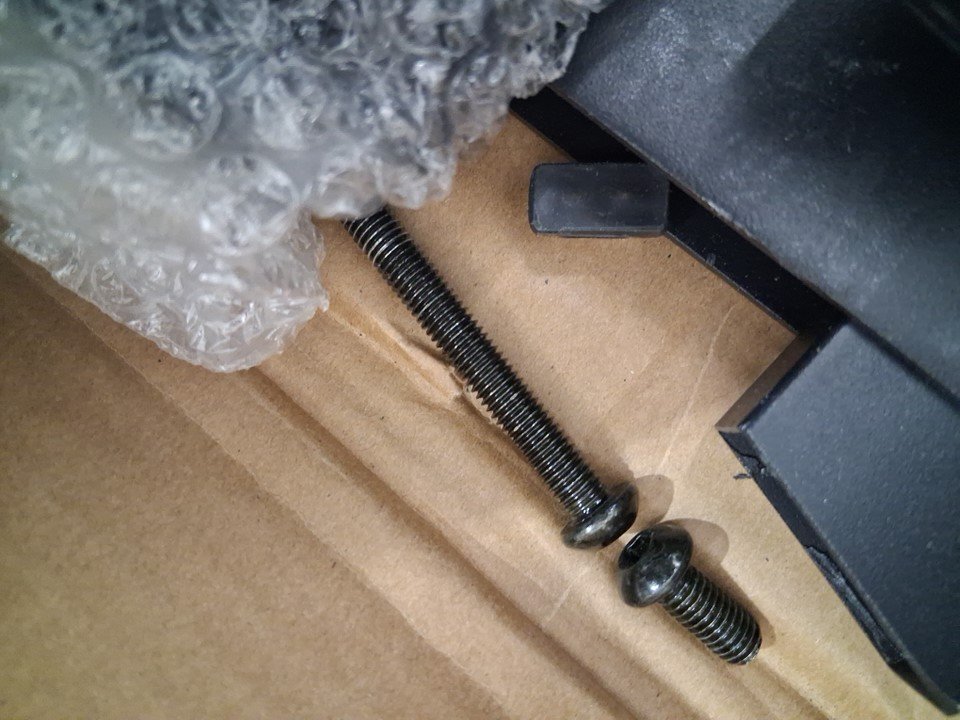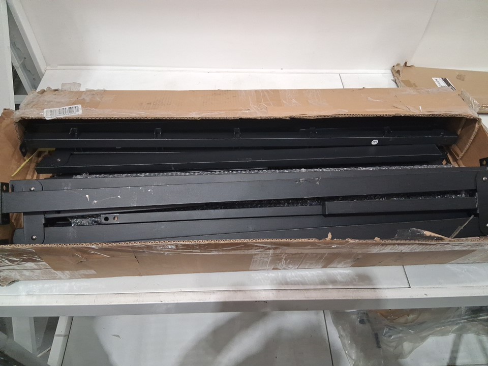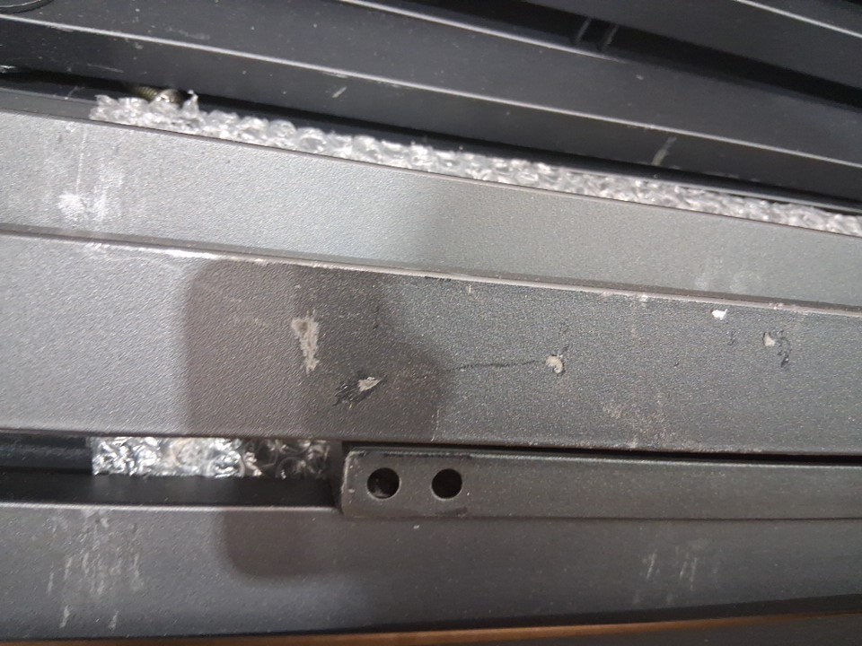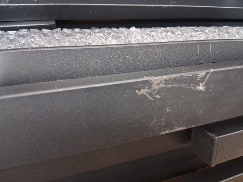there is some dens and scratches with paint peel indicating prior use. hardware was loose in box. lister can not guarantee all hardware is there.