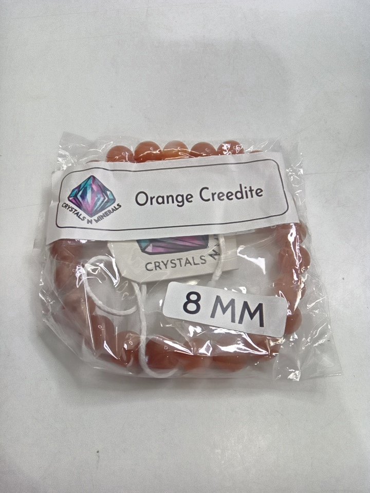 WOMENS crystal n' minerals orange creedite beaded stone bracelet -8mm
