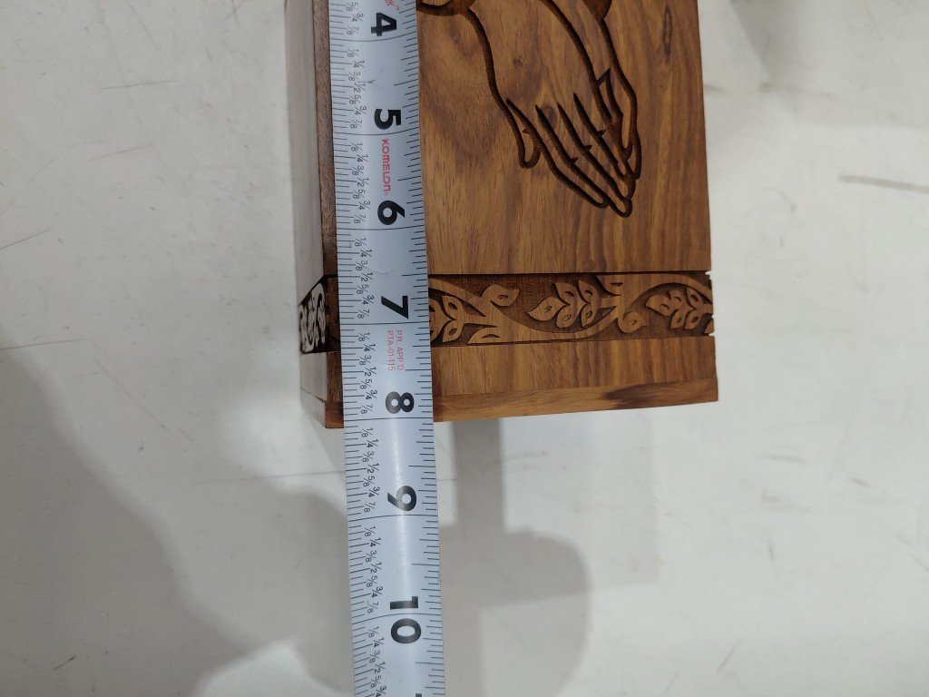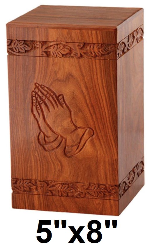 hand carved praying hands cremation urn - 5" x 8" - natural wood