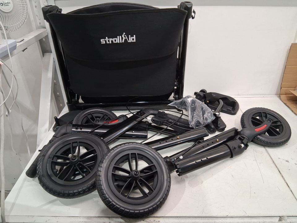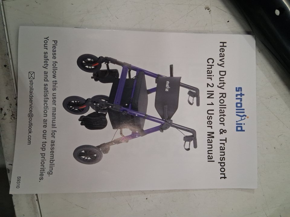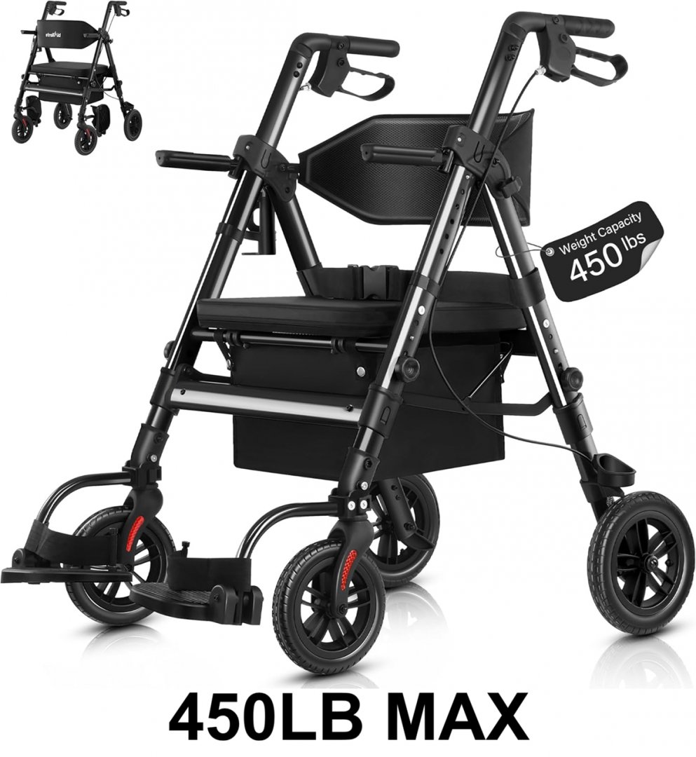 StrollAid Rollator Walker with Seat Walker Wheelchair Combo - 450LB Max - BLACK (MODEL: S9310)