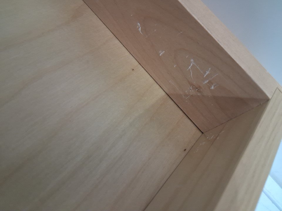 marks on the inner drawer and scuff indicating prior use.
