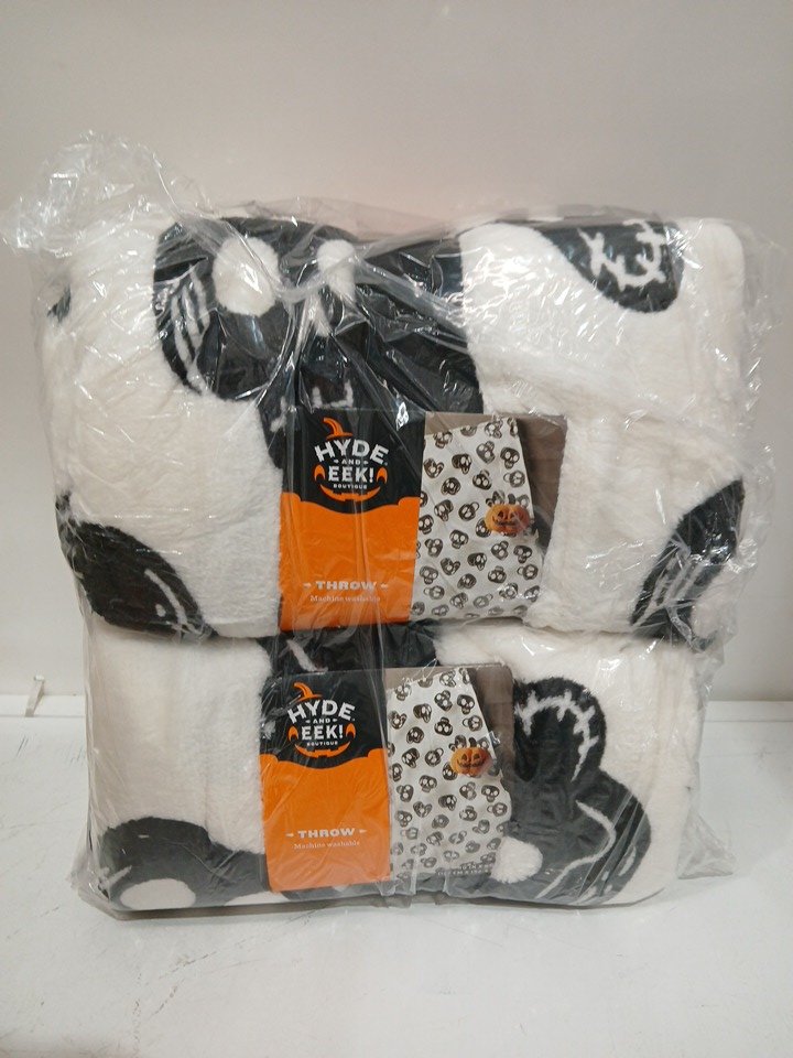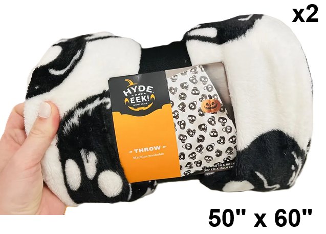 2 HYDE & EEK PRINTED THROW FLEECE BLANKET - 50"X60" - BLACK/SKULLS
