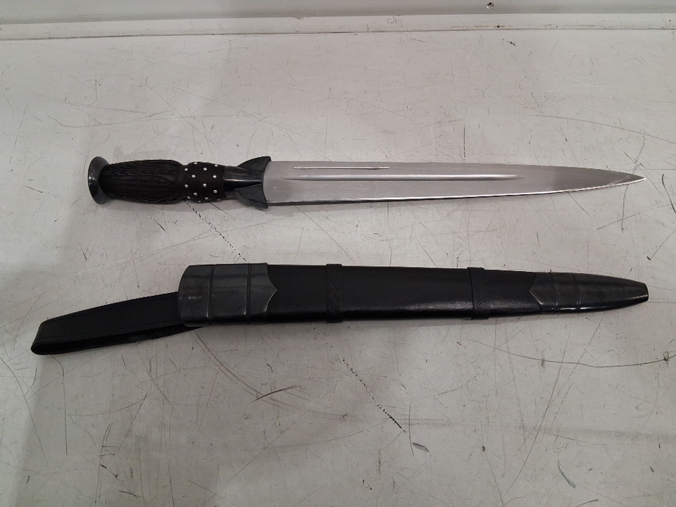 Please note the blade shows signs of previous use with some scuff marks on the scabbard and smudges on the blade, see photos.