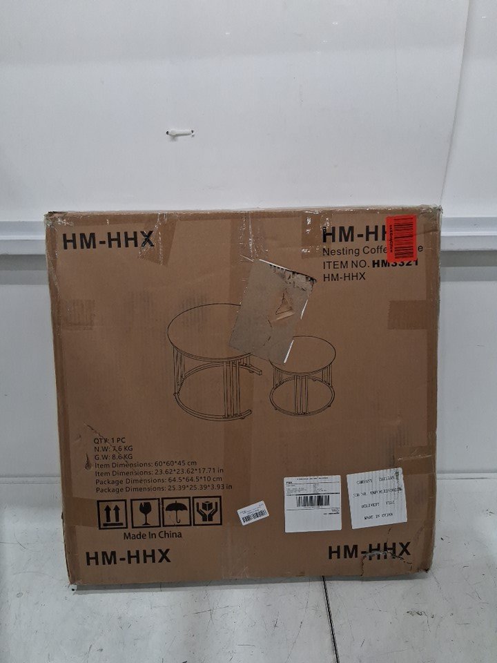2PC Garden 4 you Glass Nesting Coffee Table with Metal Frame - 23.6'' ROUND - BLACK (MODEL: HM3321)