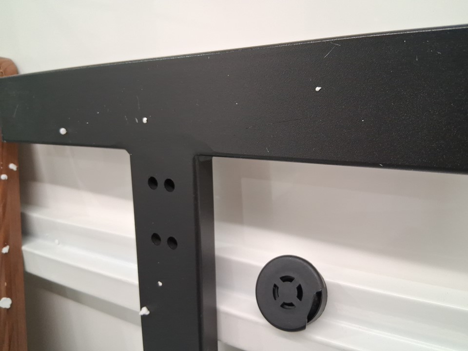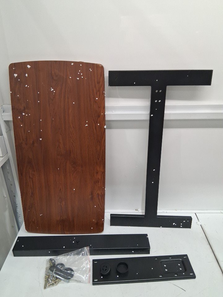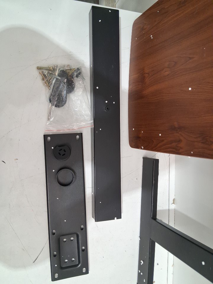 scratches along the H frame of desk, one desk wheel has chipped cap, see Photo.