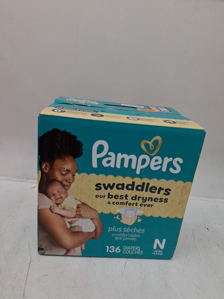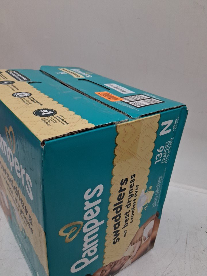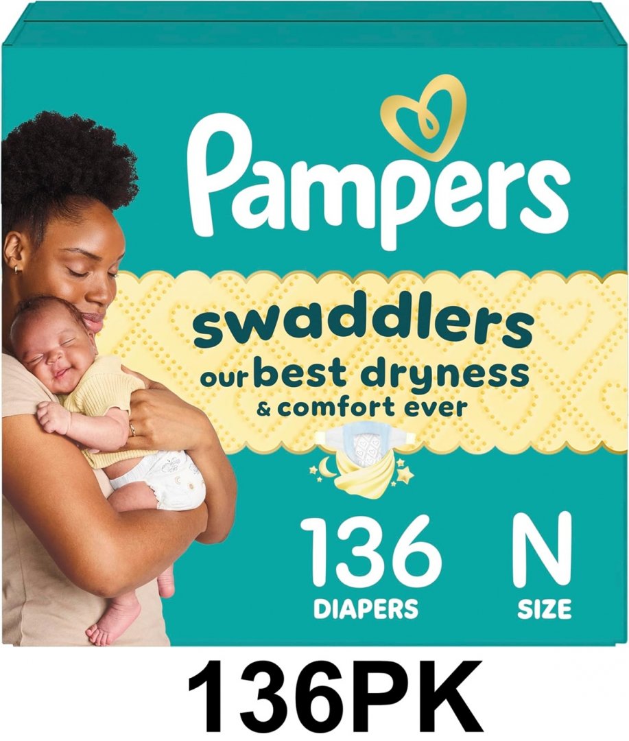 136PK PAMPERS SWADDLERS DIAPERS - NEWBORN SIZE