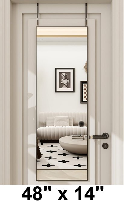 BEAUTYPEAK Over The Door Wall Mounted Hanging Body Mirror - 14'' x 48'' - black