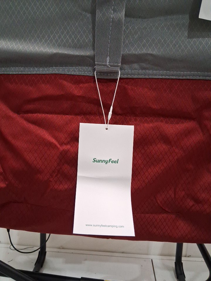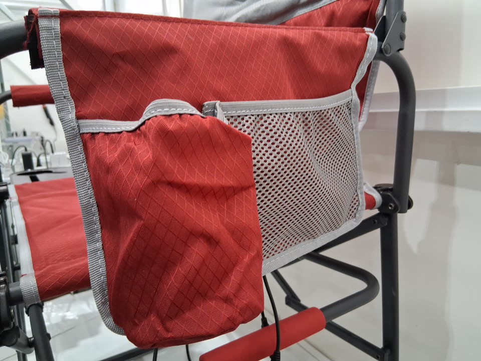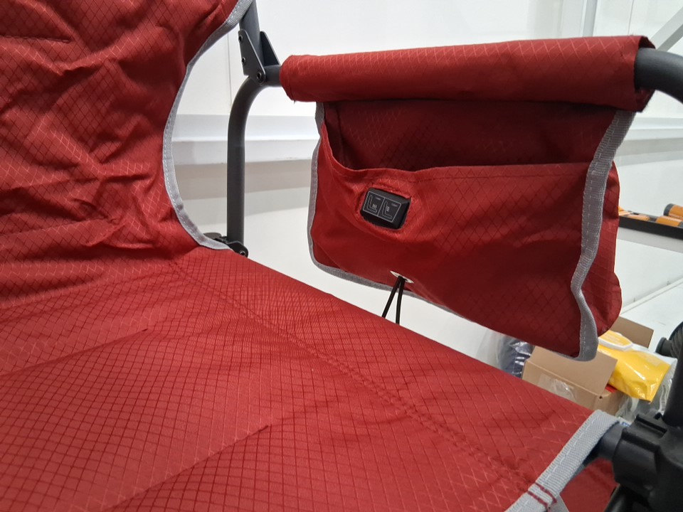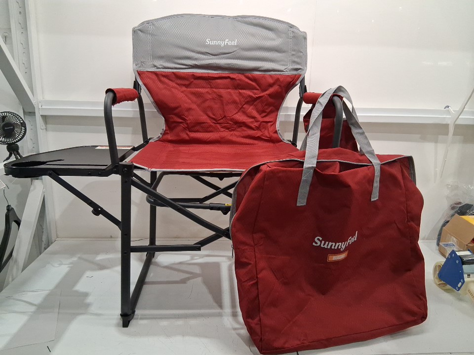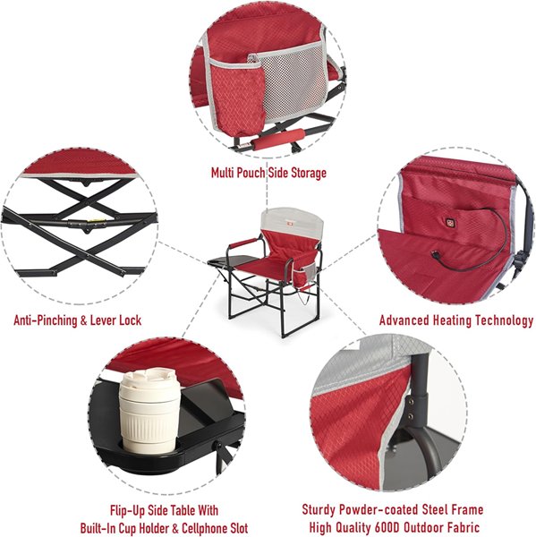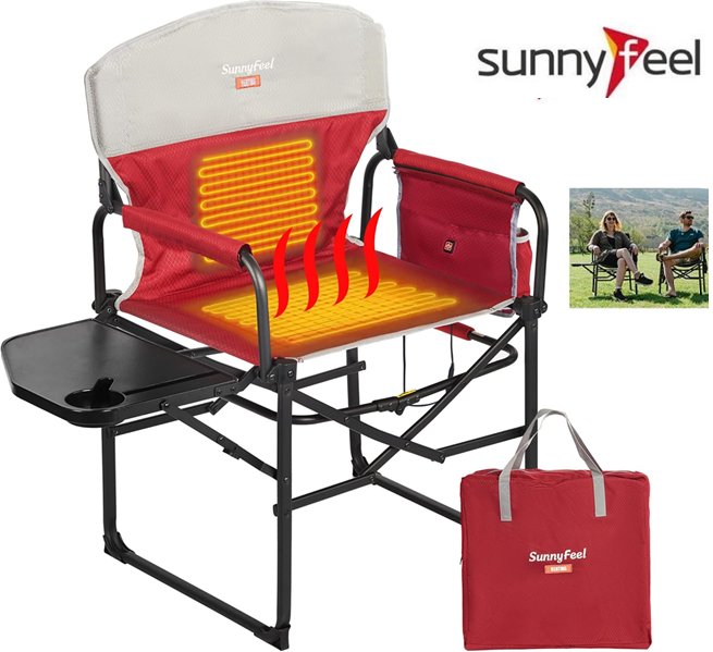 SunnyFeel Heated Camping Director Chair, Portable Folding Chair with Side Table and Storage Pouches - 300lbs cap - red/grey (MODEL: ‎AC3008L)