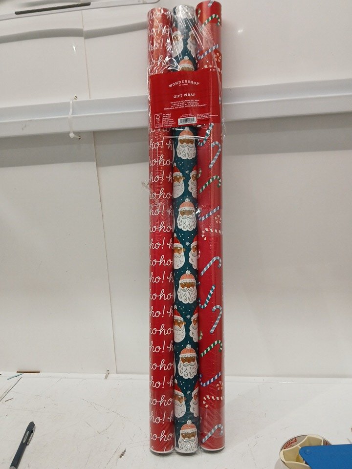 3pk WONDERSHOP Christmas Wrap Pack - 180 sq ft - Candy Canes/Santa/HoHOHO
