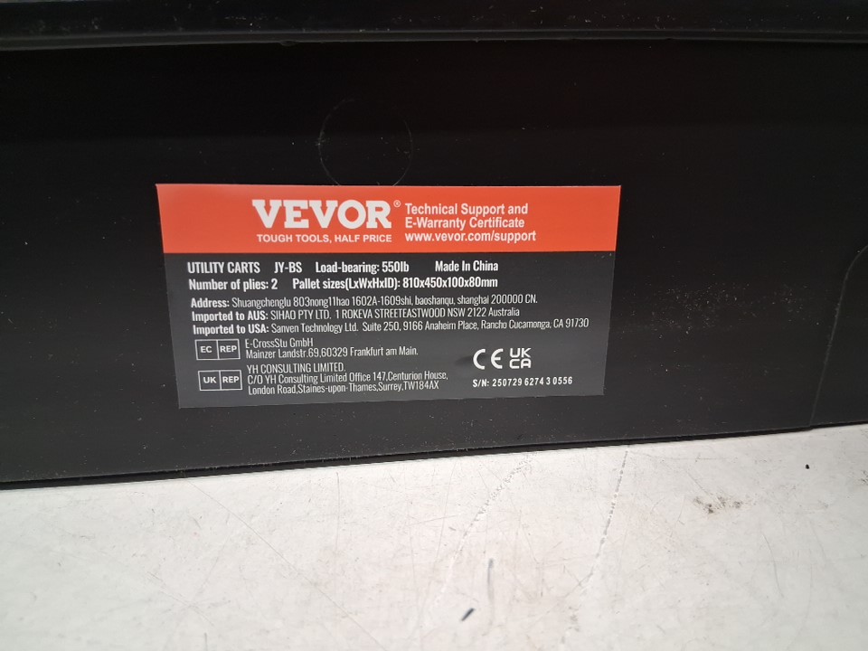 VEVOR Utility Service Cart - 2 Shelf - 37.4" x 25.6" x 33.5" 550 LBS MAX- Black (MODEL: JY-BS)
