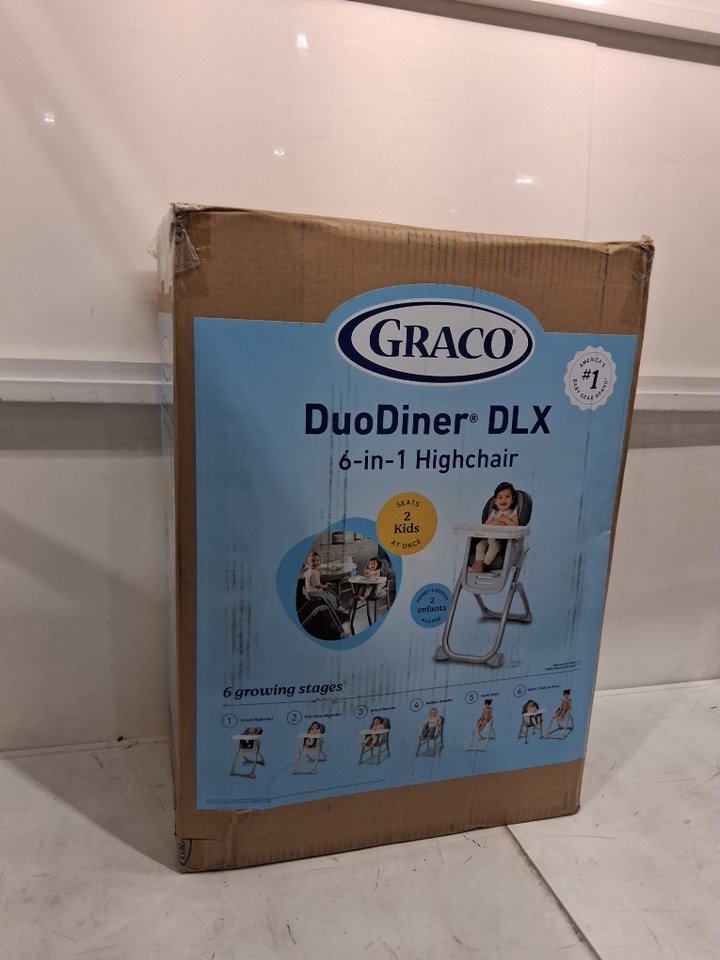 graco duodiner dlx 6-in-1 reclining adjustable height highchair with 6 growing stages - can seat 2 kids at once - 40lb max weight - allister grey (model: 2111217)