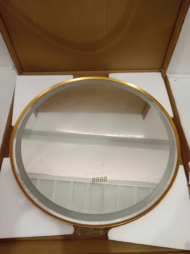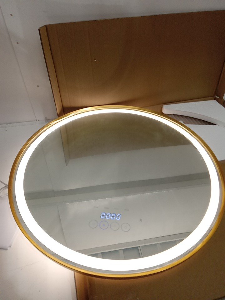 Qicoyni Round 4-Color Dimmable LED Mirror With Anti-Fog - 24" 3000K-6000K - Gold (model: gold-round-24)