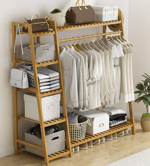OLSCROM WOODEN CLOTHING RACK WITH TOP SHELF 55'' x 43'' - wood