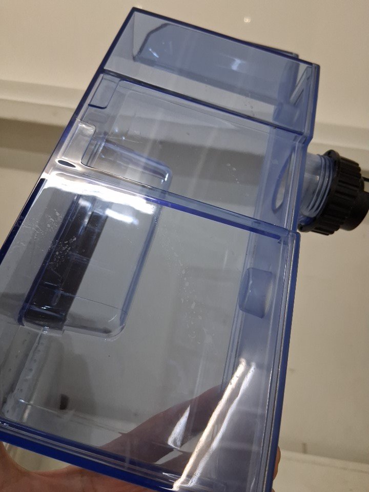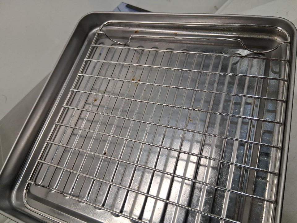 Food residue on grill attachment and liquid residue on filter from previous use, item was tested for power