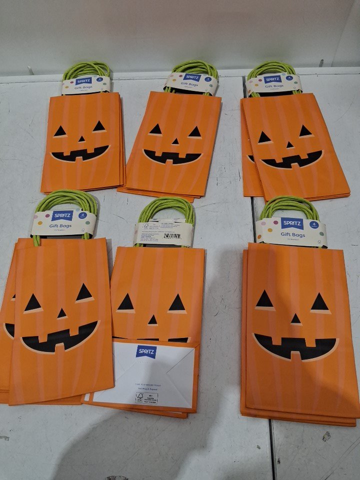 6 (4PK) Spritz Small Jr Tote Halloween Jack O'Lantern Gift Bag - 8" X 5" - ORANGE