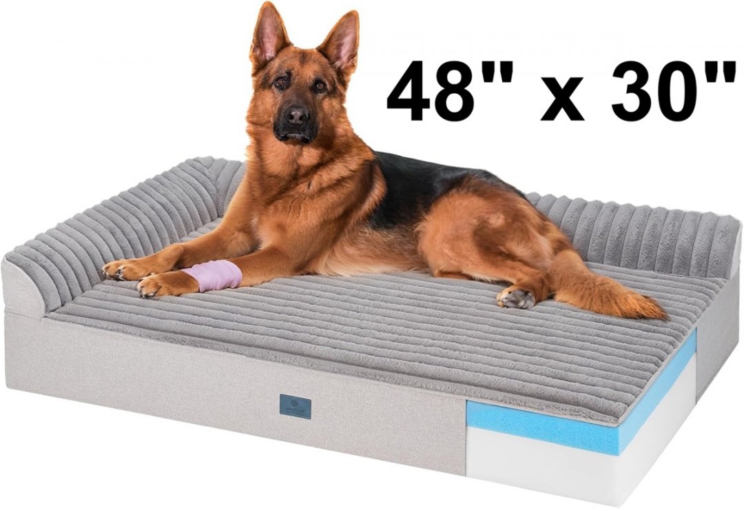 veehoo l shaped bolster orthopedic dog bed with washable cover - Large (48" x 30" x 7") - gray