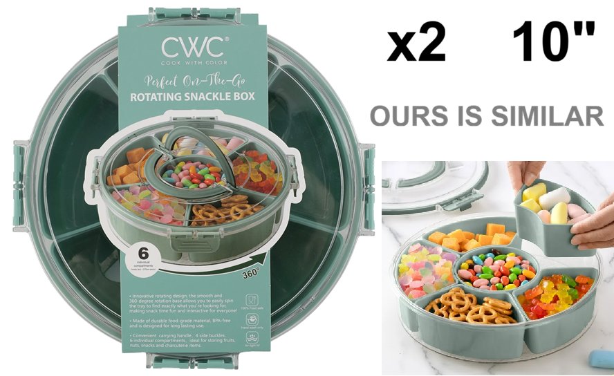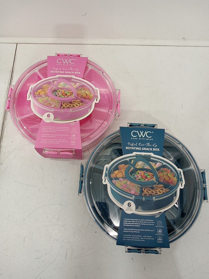 2 COOK WITH COLOR ROUND 6 DIVIDER SNACKLE BOX WITH CARRYING HANDLE AND TURNABLE BASE - 10" - BLUE/PINK