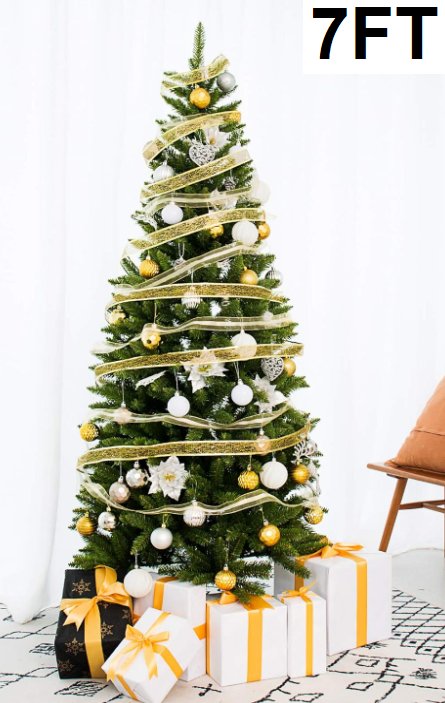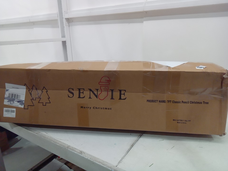 Senjie Artificial Christmas Tree Classic Pine Fir Pencil Tree - 7ft - green