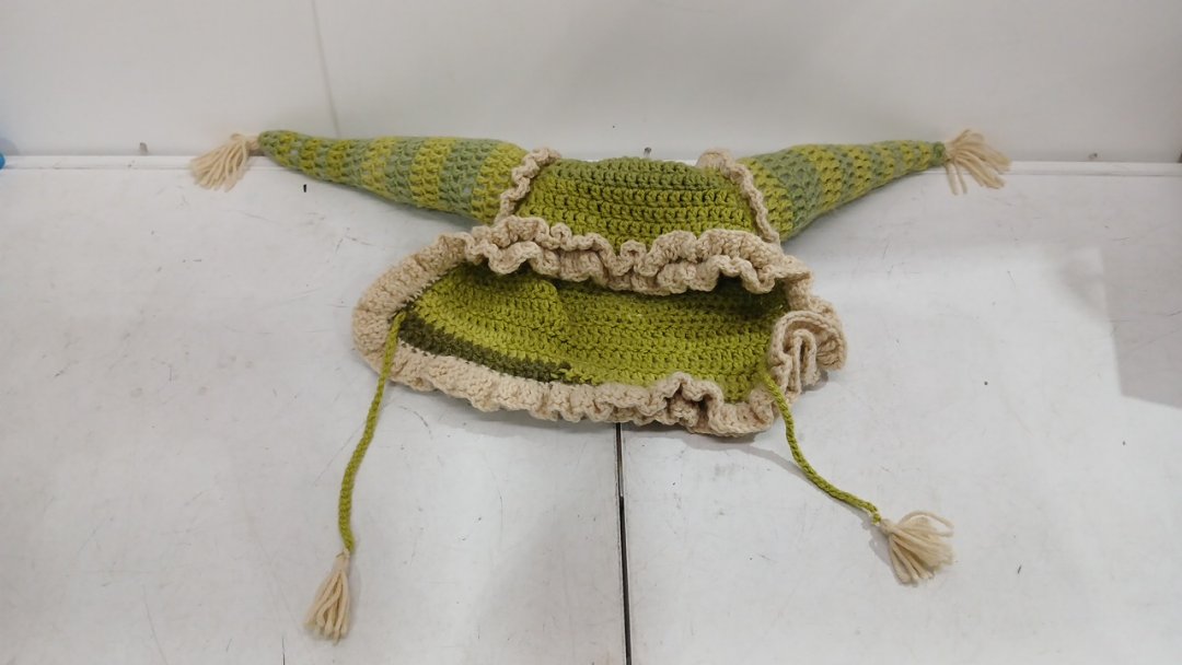 unisex adults handmade crocheted elf hat - osfm - beige/green