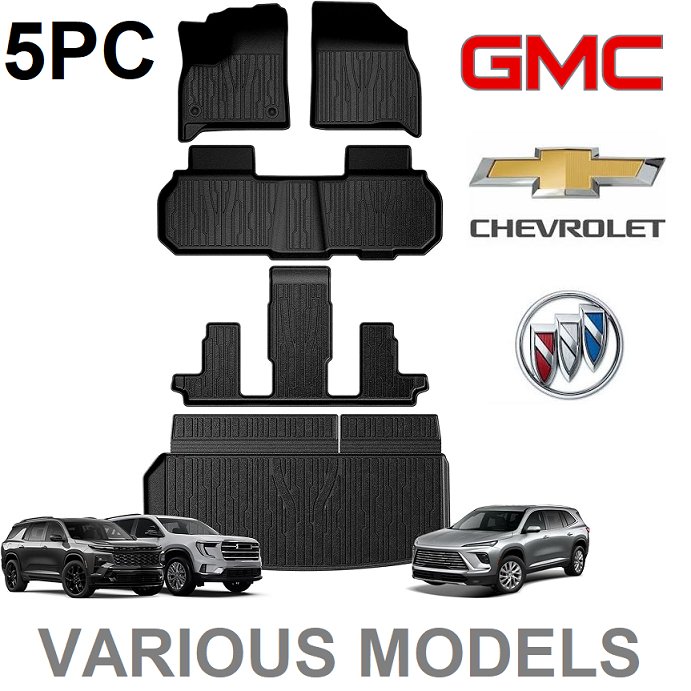 5pc triplealiners all weather floor and trunk mats for various gmc, chevrolet, and buick models - black (model: ‎3A-ACTVEN-FTM)