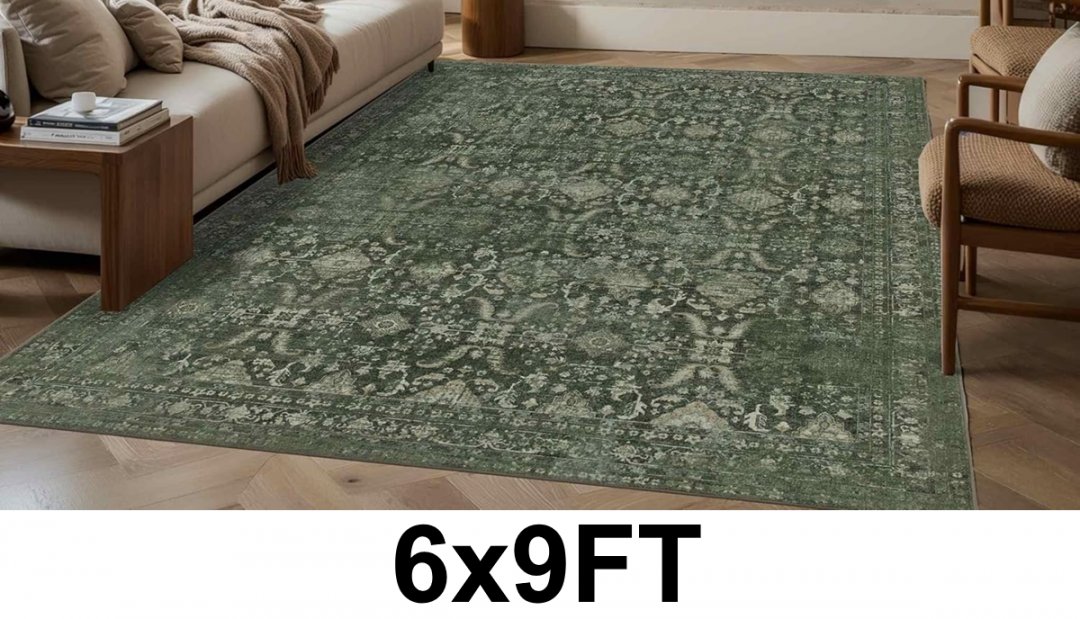 LAISE Boho Botanical Rectangular Dining Room Rug - 6FT x 9FT - Green (Model: ‎RX203)