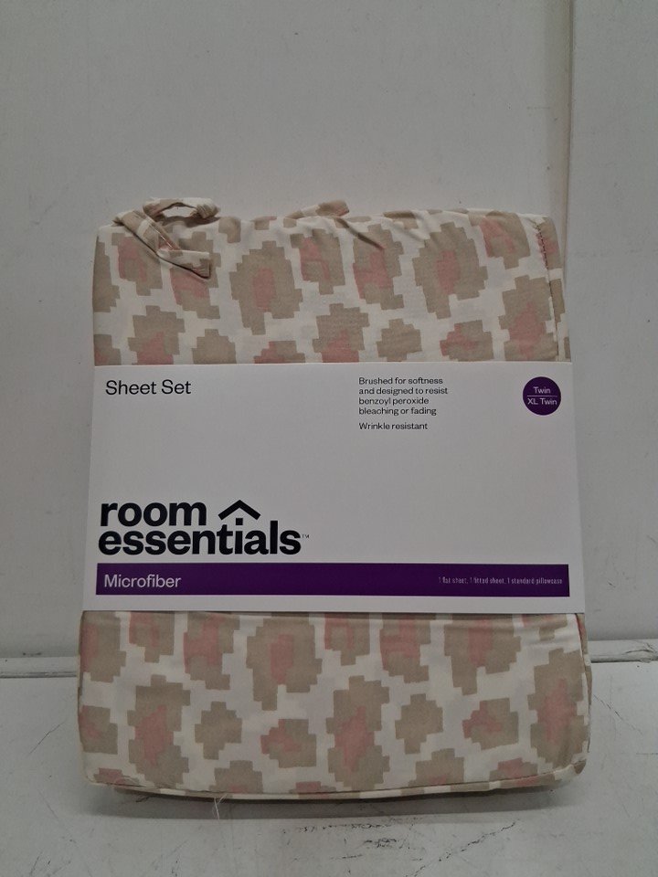 3PC Room Essentials Microfiber Sheet Set - Twin - Pink Leopard Print