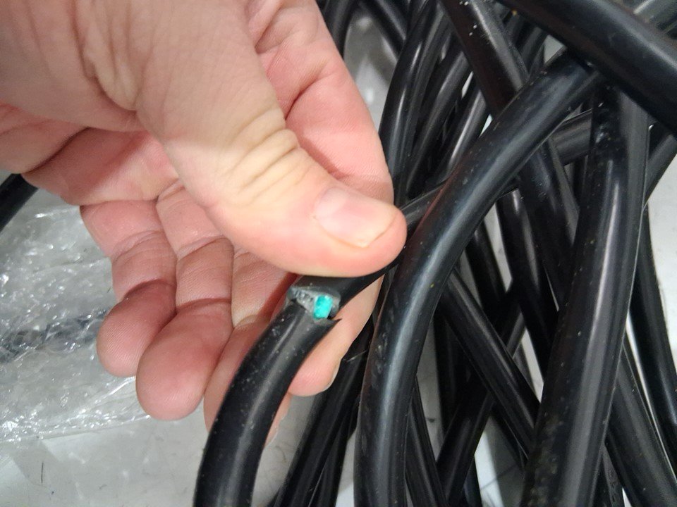 there was damage found to the extension cord with some exposed wiring that some electrical tape could cover up upon testing the item it was determined it had power.