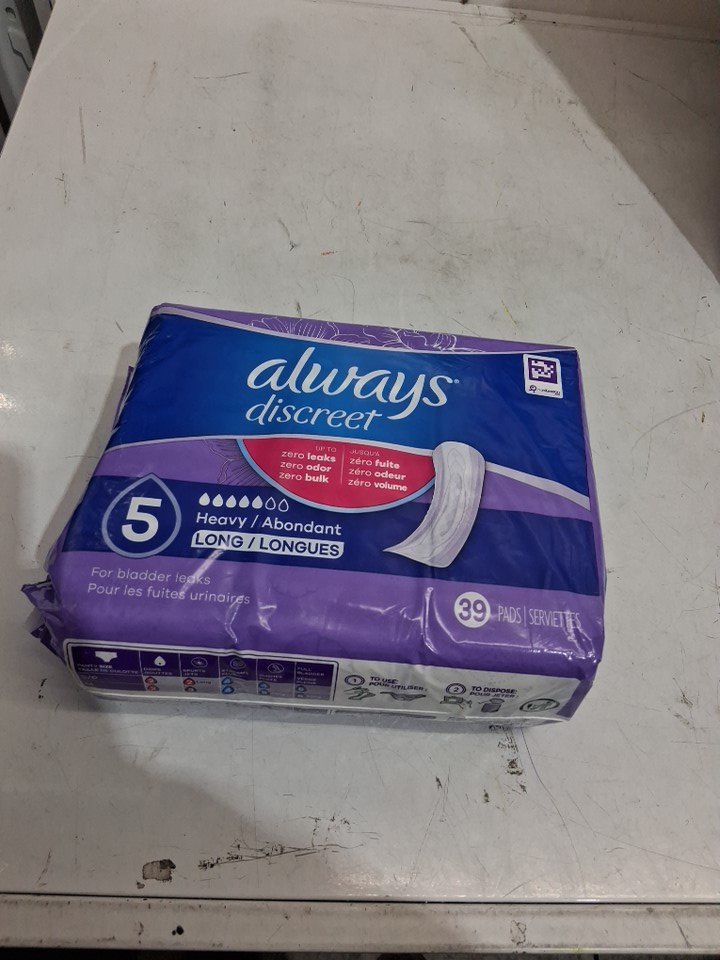 39pk women's always discreet incontinence and postpartum pads - size 5, heavy long