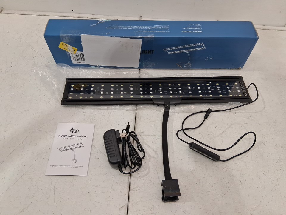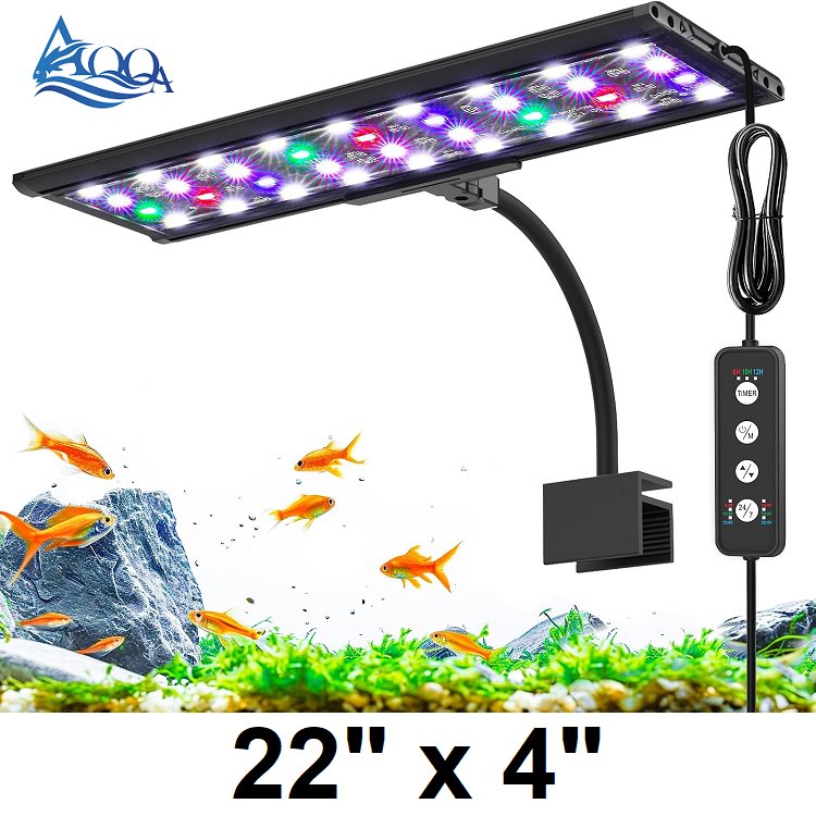 AQQA waterproof AQUARIUM CLIP LIGHT with flexible arm and timer - for 24"-32" tanks - 22" x 4" - 7 light colours - 5 brightness levels - 26w - black/multicolor (model: aq-061-26w)