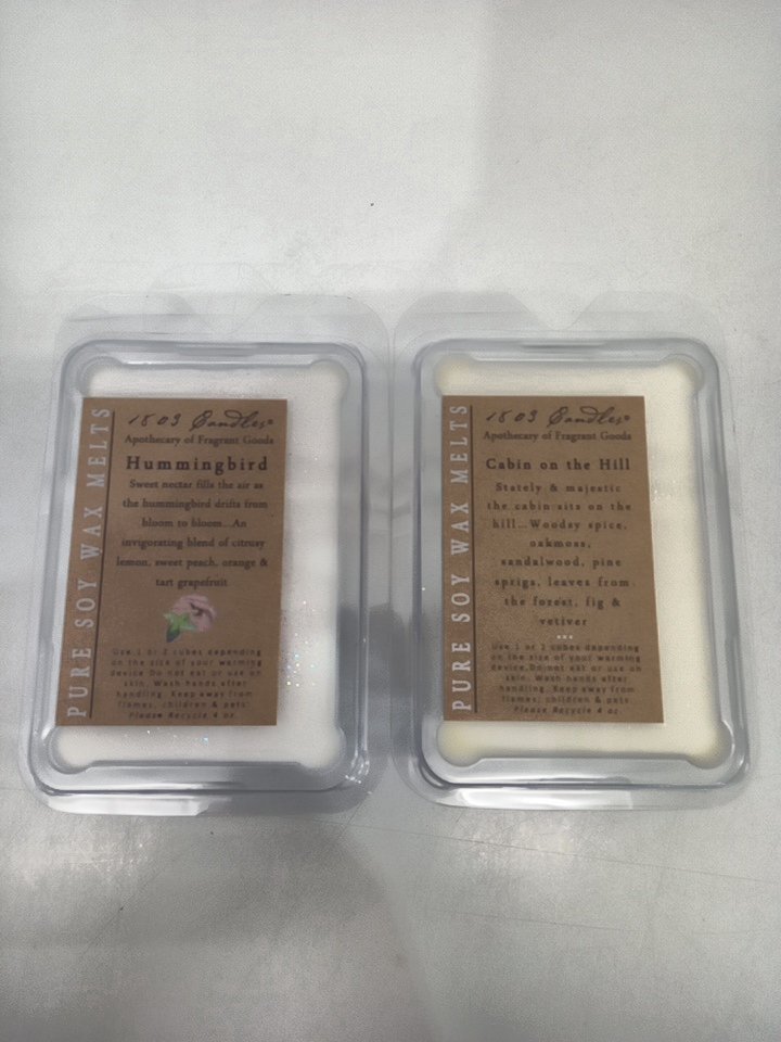 2PC 1803 CANDLES pure soy wax melts - cabin on the hill/ hummingbird - 4oz/each