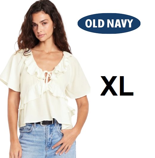 WOMEN'S old navy satin ruffle tie-front shirt - EXTRA LARGE - WHITE