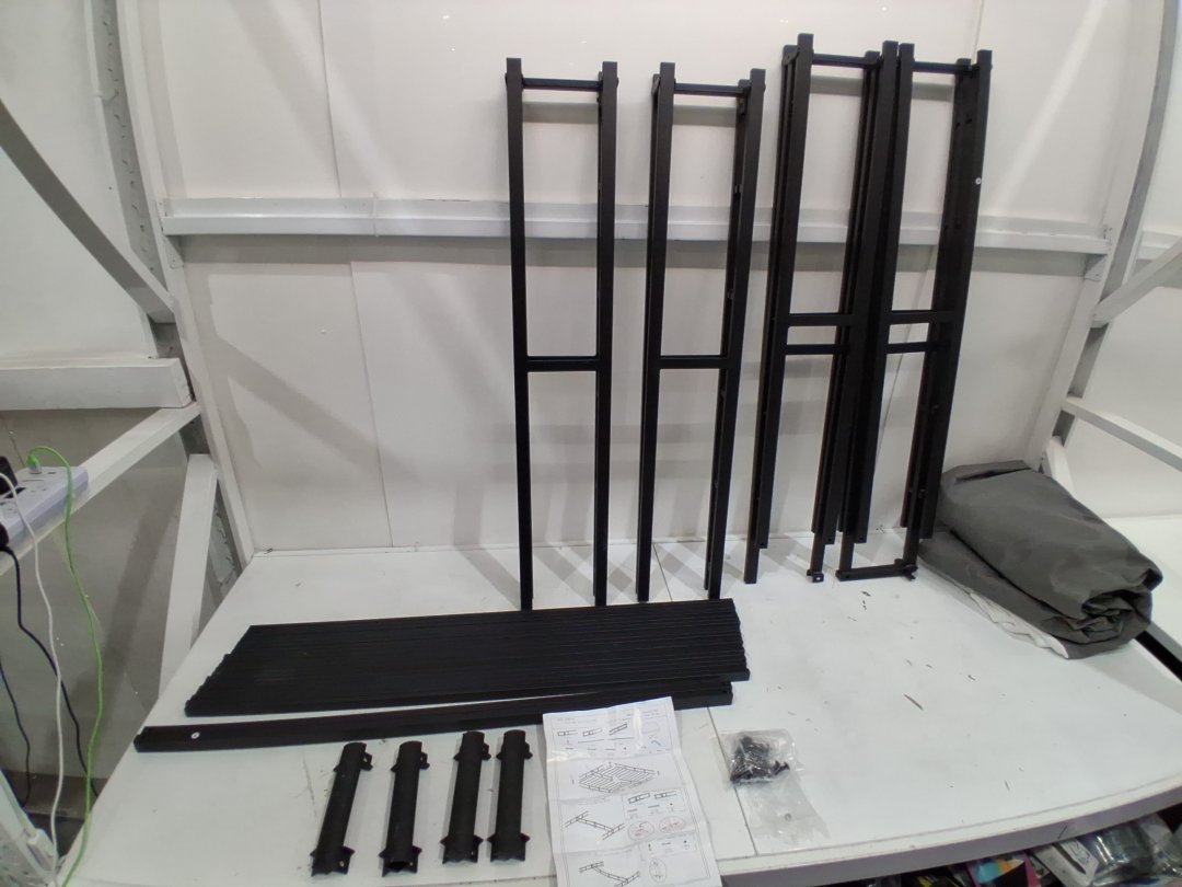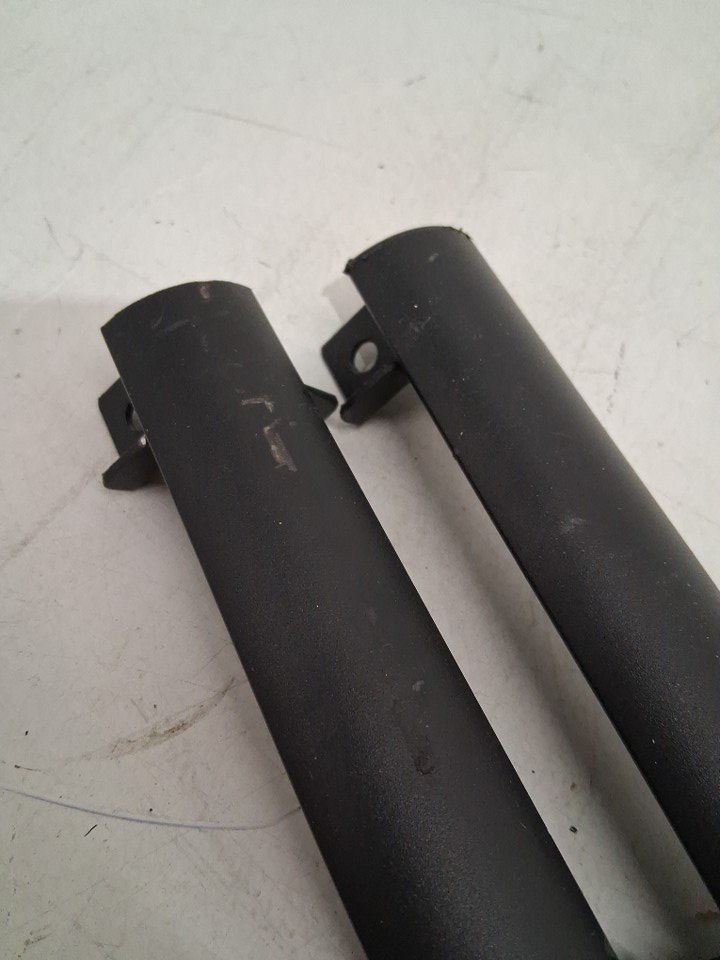 Cosmetic. Corner pieces have some scuffs, small knicks and scratches from poor packaging. Might be missing some hardware.
