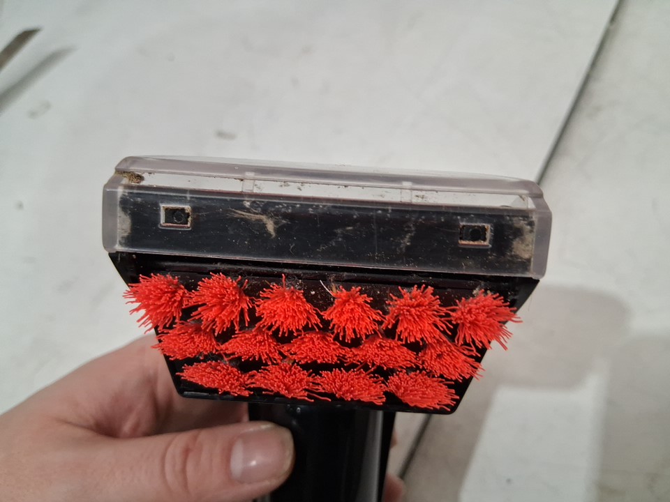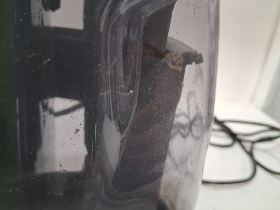missing liquid due to previous light use, item also has dust and debris inside throughout vacuum and on attachments ( see photos)
