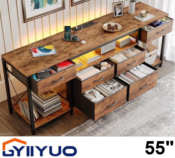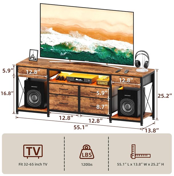GYIIYUO LED TV Stand with 6 Fabric Drawers and Power Outlet - 55" - RUSTIC BROWN (MODEL: 5ECA-TVS005-160ARB)
