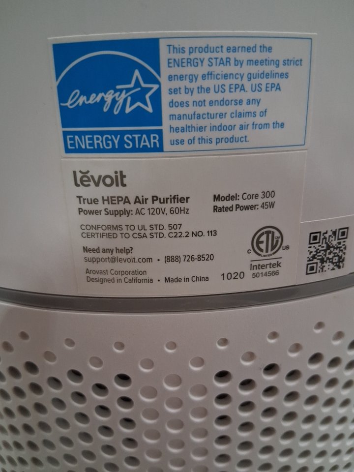 Levoit HEPA Air Purifier for Large Rooms Up to 547 sq. ft. - WHITE (MODEL: Core 300)