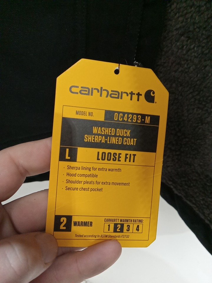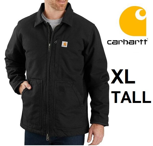 mens carhartt loose FIT, SHERPA LINED, WASHED DUCK FIELD JACKET - 2 WARMEST RATING - extra large tall - black (style: 0c4293-m)